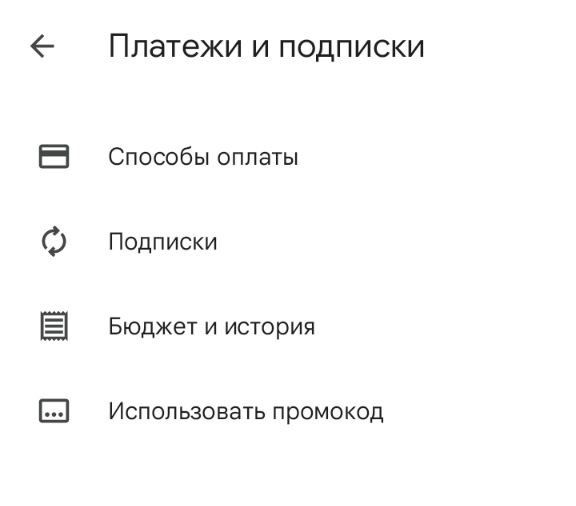 2. Выберите пункт "Платежи и подписки":