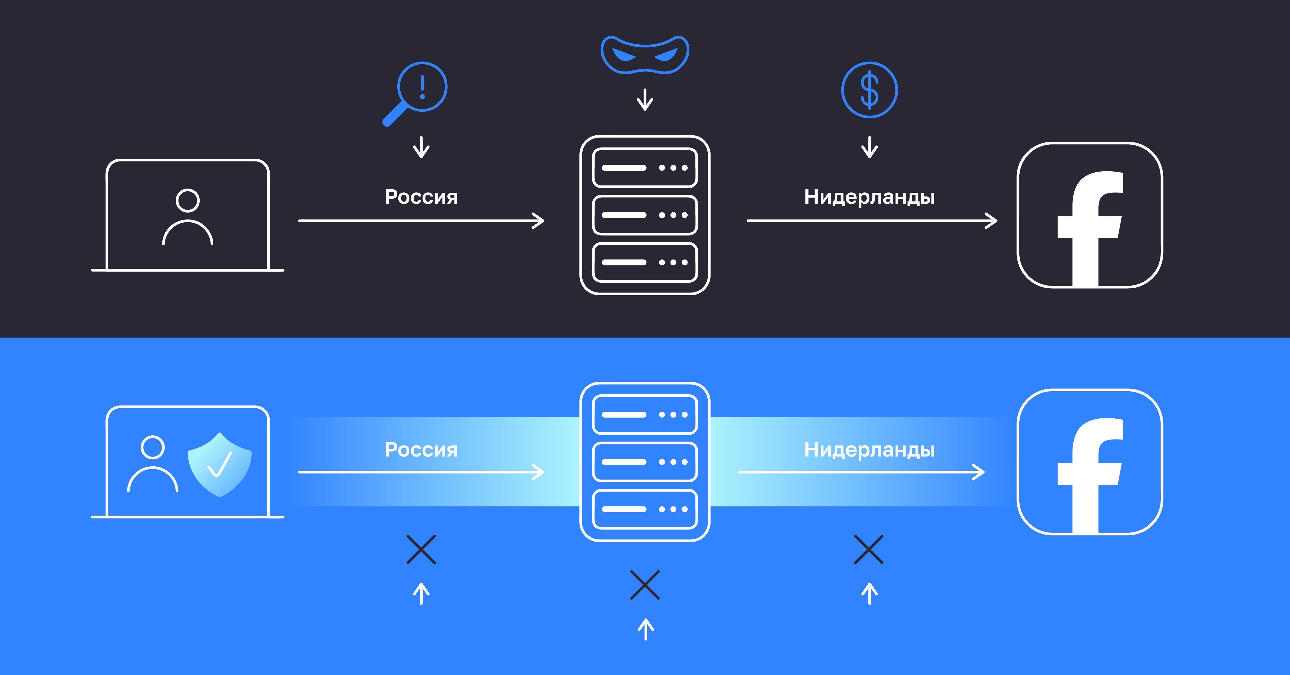 • ваш интернет-провайдер думает, что вы обращаетесь не к Фейсбуку, а к какому-то нидерландскому сайту, и не блокирует соединение;